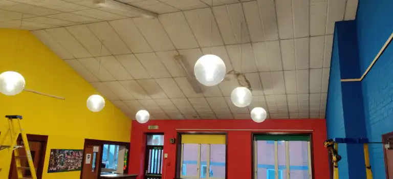 Our first buildings work started in February with the false ceiling being replaced by Granmore, the pictures below show just how much of an improvement was made!